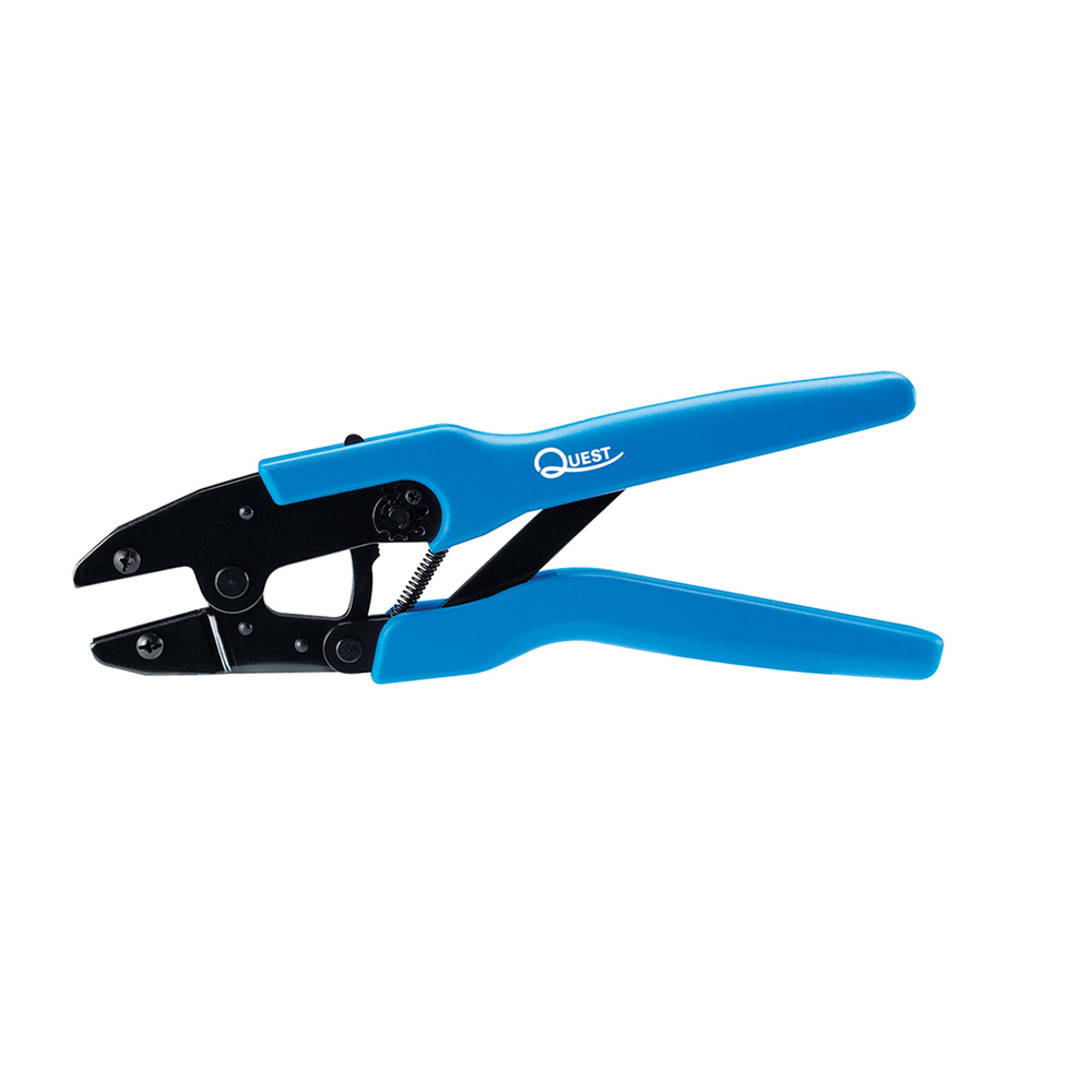 The Quest Professional Ratchet Crimp Tool series provides installers the best choice in professional connector crimp tools. These tools are designed for durable use and provides long life dependability and consistent, reliable terminations, crimp after crimp. They feature a 9ʺ frame design, which allows strong leverage during the crimp process with a ratchet action mechanism providing easy, repeatable and reliable crimps. The tools come complete with a set die, which are also interchangeable.