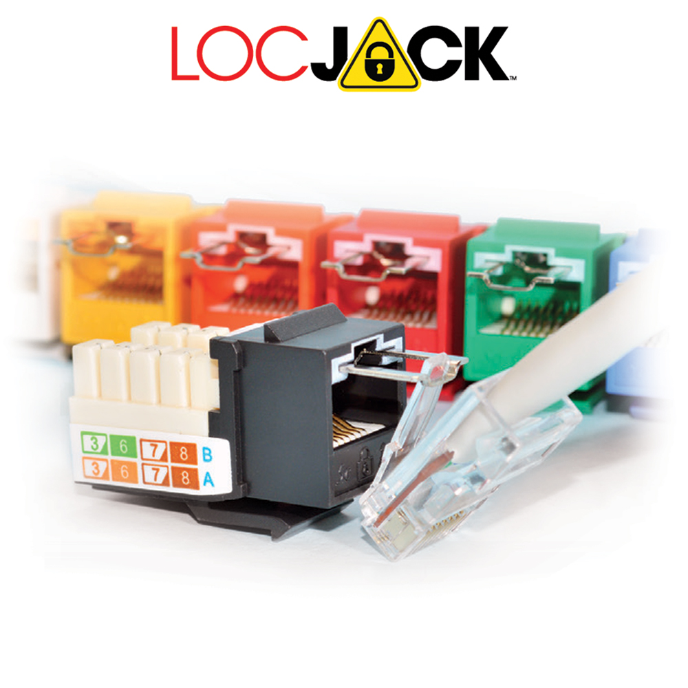 LocJack’s locking feature is built into each individual jack which provides a secure fastening of the patch cord and protects from accidentally or intentionally being removed or inserted by unauthorized personnel. Each locking jack is designated by a highly visible orange or white insert located at the locking bar, as well as a lock icon molded onto the front of the jack.